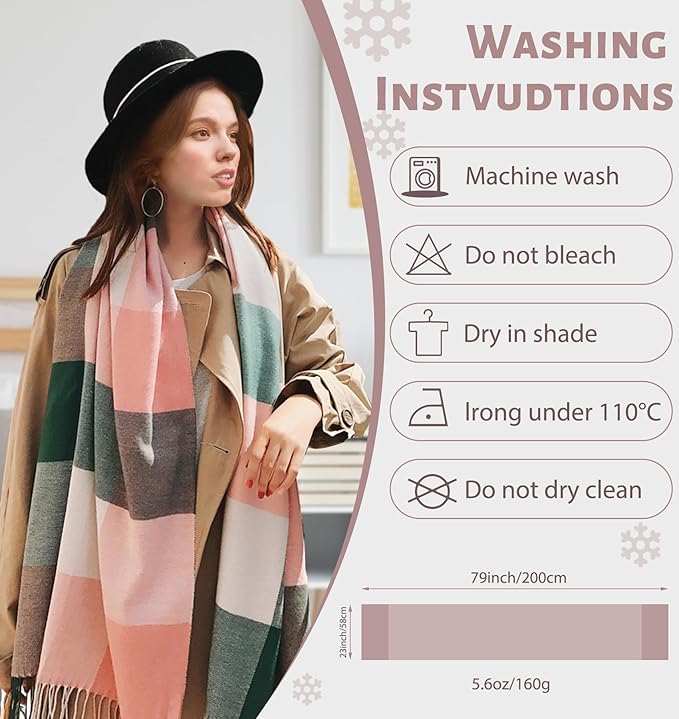 • Suitable Size: Our plaid scarf measures approximately 79 inch length and 23 inch wide, include the tassel; The winter scarfs is soft, medium weight, wrap the scarf around any outfit and it will keep you warm all day in winter